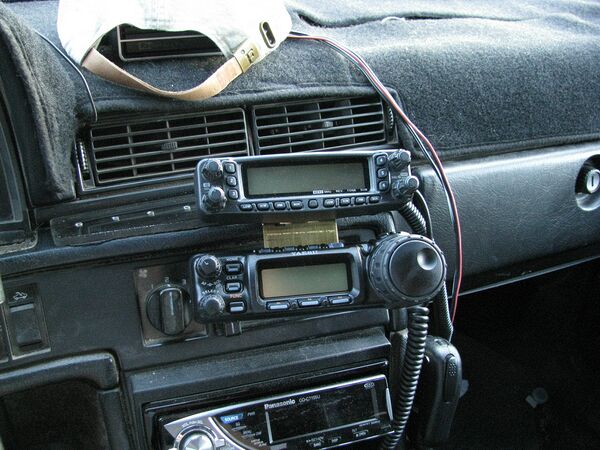 Here is a shot of the head installation. The FT8900 head is also mounted in this shot. Normally the FT8900 stays on the desk at home as a base station, though the mounting is left in the car in case I plan to use it.