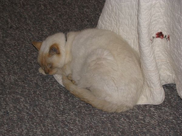 The beautiful coloring really shows in this picture. The cat is like most, lovable and PURRS. We enjoyed Blue's company for quite a while.