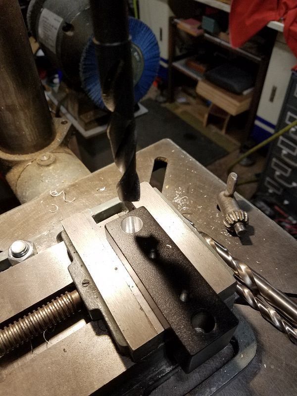 I had to deepen the pockets for the Allen bolts for the Z Axis bracket where it attaches to the carriage. Quick and dirty drill press action.