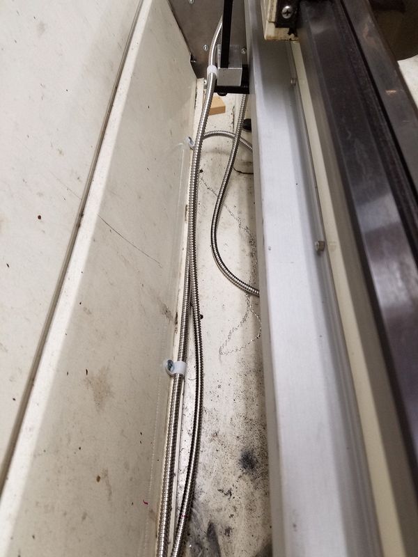 Cable routing looking down towards the tail stock end of the lathe. Installed Z Axis scale cover can be seen.