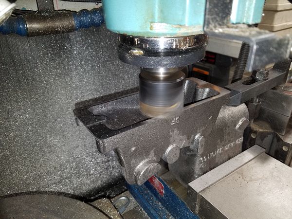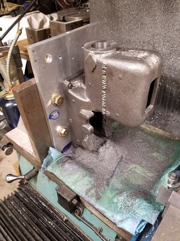 With the fixture in the vertical position I used a 2" boring head on a 3/4" stub adapter and a 6" boring bar shortened to 5 3/4 inches. With the knee all the way down the cutter would sit about 3/16" above the face and it would just come through the other end of the bore (just barely). I had enough clearance that I could remove the boring head as an assembly from the machine without disturbing anything.