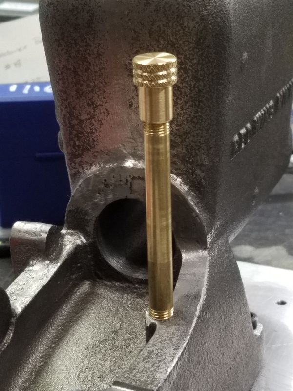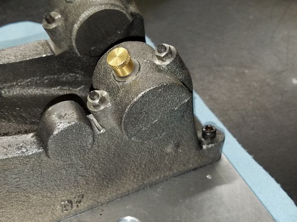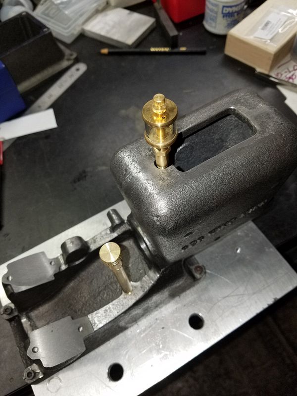 Installed drip oiler and fuel filler tube. Later on I shortened the pipe so the top of the union just barely stuck up above the casting surface.