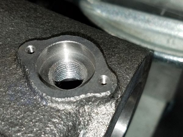 After facing the casting at the spot where the fuel filler tube will be located I drilled and then tapped a 1/16 npt hole.