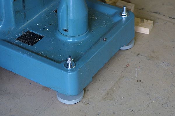 It is important to note that the ready rod is not secured in the base with any sealant like Loc-Tite. The reason for this is to allow the installation of the feet without having to lift the mill the full 9" off of the floor. The mil was lifted just high enough to fit the base, one nut and one washer and some extra room for assembly. The ready rod was dropped through the hole in the mill base, the washer and then threaded first through the nut and then into the base.