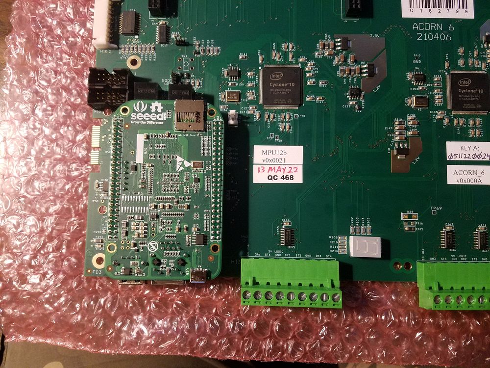 The lower left corner showing the Beagle Bone Green controller and the two 5V Logic drive connections for 6 Axis control. Between the drive connections is the new 3 digit LED readout for error codes.