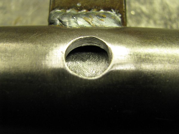 This is the hole that the epoxy is poured. You MUST use a viscous epoxy! After the epoxy is set you then drill through the inner tube.