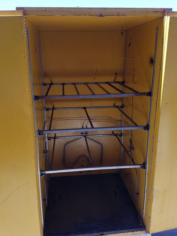Cabinet with all three shelve installed. Clip track shelving supports allow a large amount of configurations.