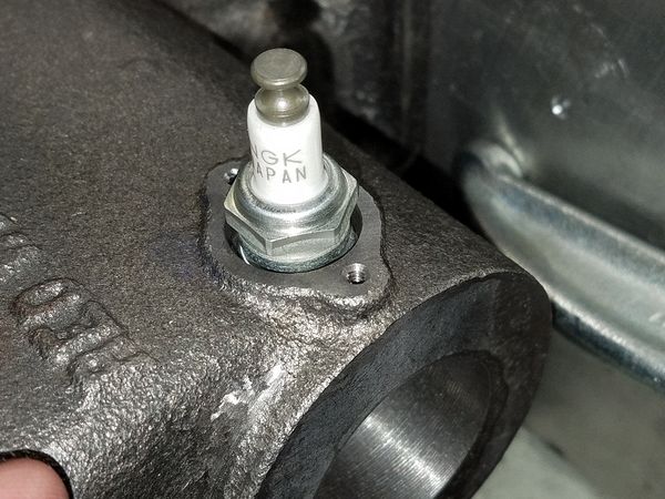 Setup to tap the 10mm x 1.0 sparkplug hole. Not being familiar with cast iron I elected to hand tap and used an angle plate to hold the fixture .