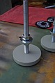 It is important to note that the ready rod is not secured in the base with any sealant like Loc-Tite. The reason for this is to allow the installation of the feet without having to lift the mill the full 9" off of the floor. The mil was lifted just high enough to fit the base, one nut and one washer and some extra room for assembly. The ready rod was dropped through the hole in the mill base, the washer and then threaded first through the nut and then into the base.