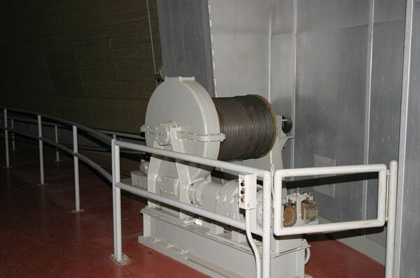 The winch that runs the elevator up the inside of the dome to access the top of the telescope.