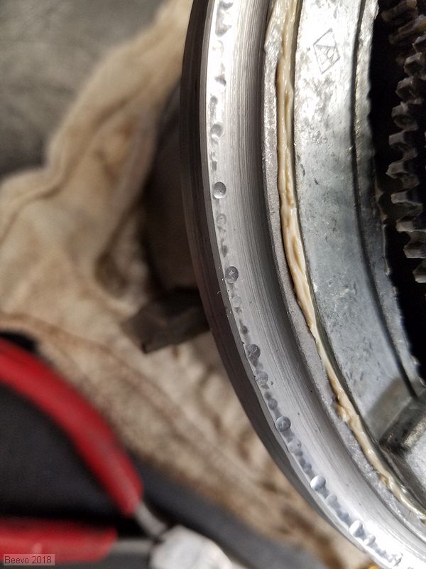 Bearing surface pitting. I believe this was caused by the antenna being parked in one location with a load on it for an extended period of time. Should not affect the operation.