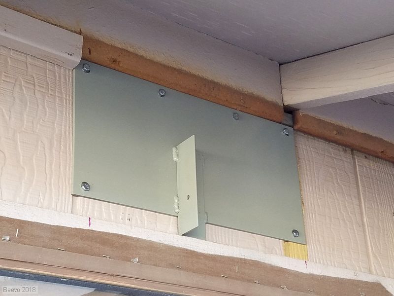 Wall plate in place. Top row of lag bolts screws into the top plate of the wall. Bottom bolts are into the studs. Finished in Rustoleum Professional spray.