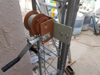 The tilting system is operated by a hand crank boat winch that has a hex drive and can be turned with a cordless drill.