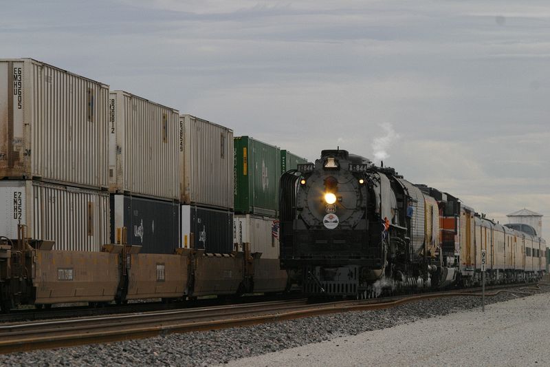 Steaming west past the water tower in Red Rock AZ. I had planned to position myself for a better background but the people already there were set up in such a was as nobody was going to get a good shot without crowds in view. This would have been a picture perfect place except they decided to siding an east bound container train.